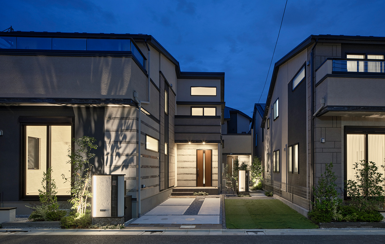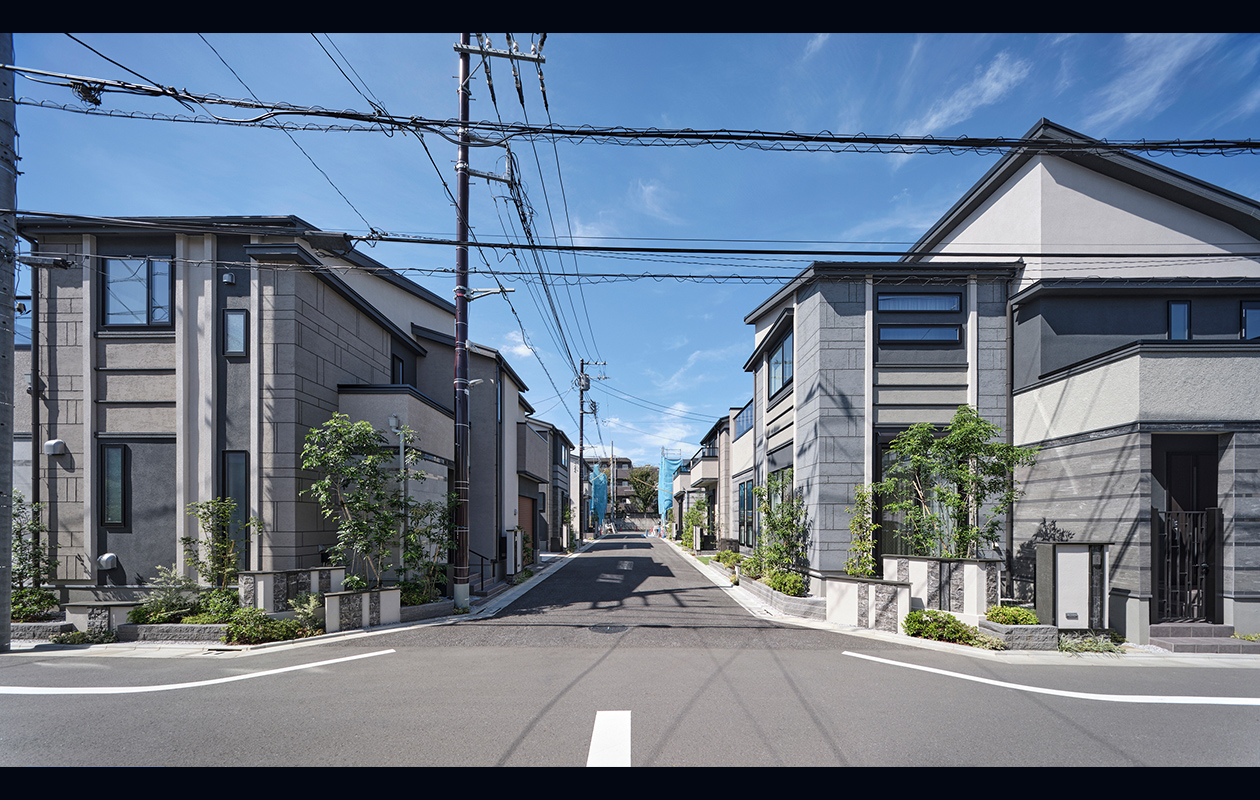 練馬区のまちづくり条例により、敷地・建物ともに各区画にゆとりを持たせたプランニングを実現。