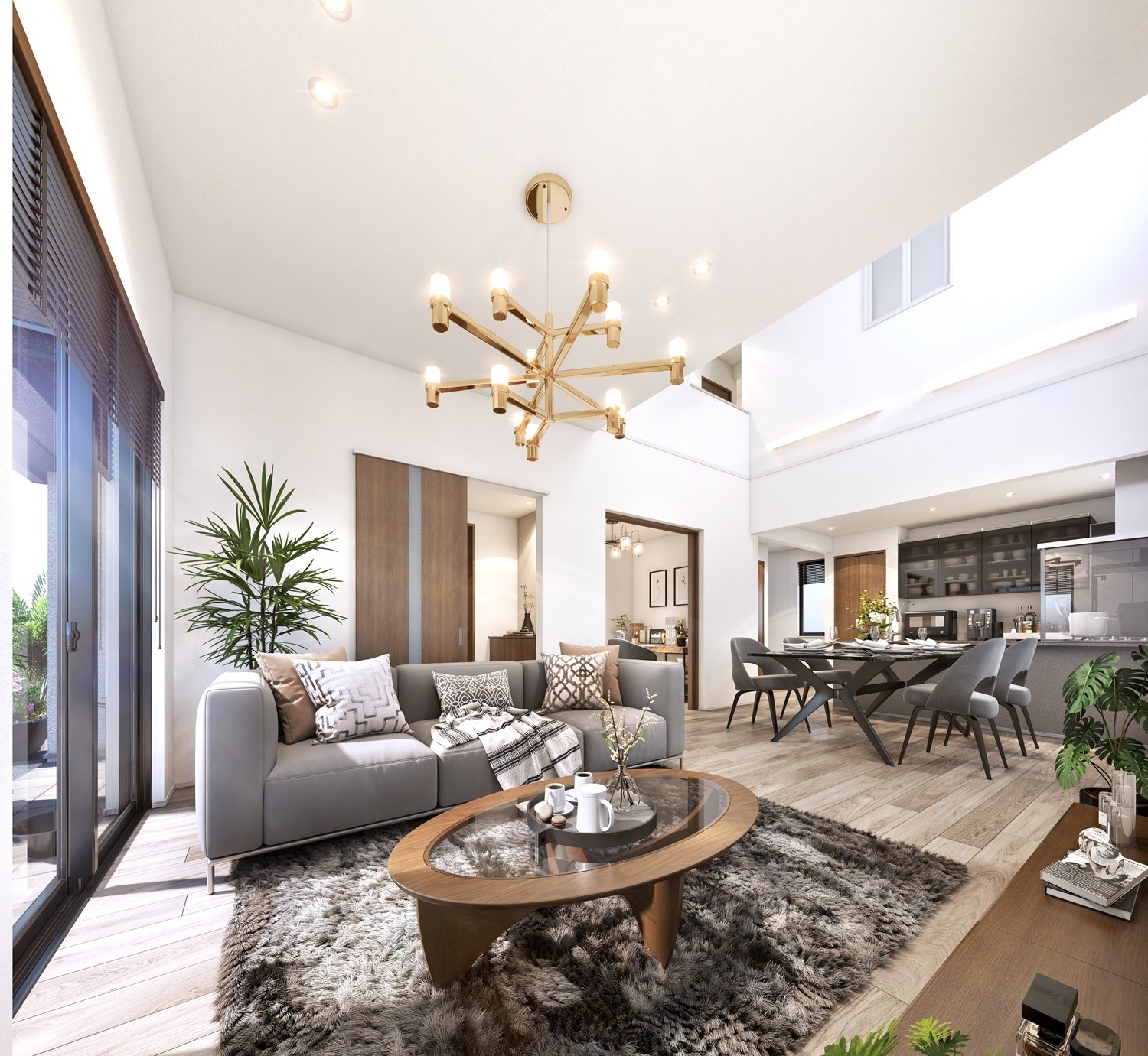 天井高は最大2.9mに達し、家族が自然と集まる開放的でゆとりある空間をデザインしています。