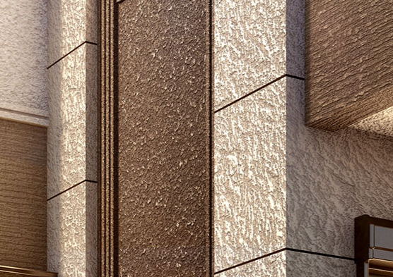 重厚感を演出するコーナーウォールやベンチ