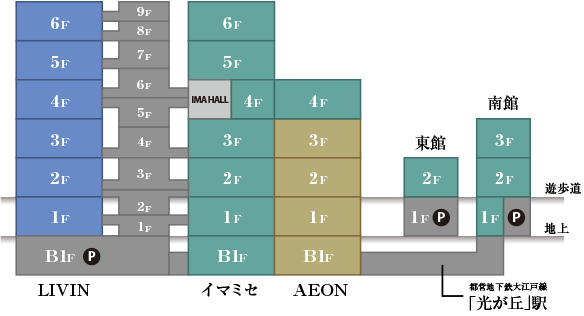光が丘IMAは、リヴィン光が丘店・イオン練馬店の2店をはじめとした、約150店の専門店によるショッピングセンター。文化・スポーツ・業務・娯楽施設なども擁する多機能複合型商業施設です。1987年に誕生し時代とともにライフスタイルや趣味・趣向が移りゆく中、これからも多様化するニーズに応えるショッピングセンターでありつづけるため、暮らしの新たなコミュニティの場へと、生まれ変わりました。