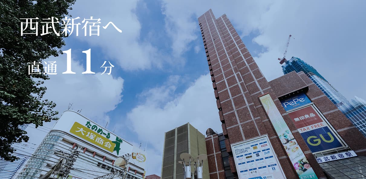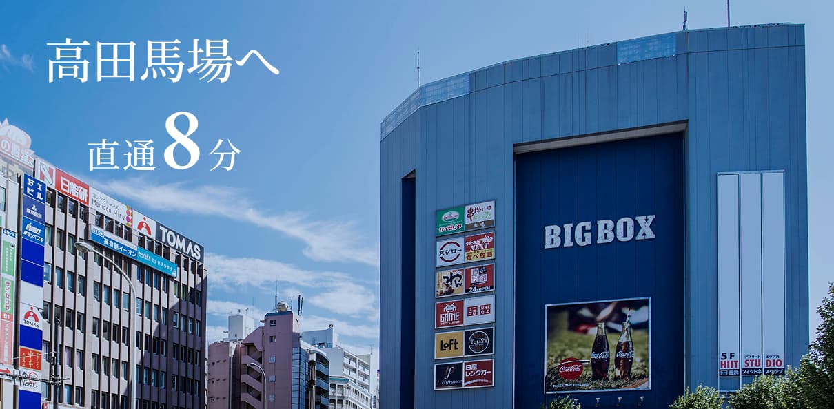 東京メトロ東西線、JR山手線につながる「高田馬場」駅へは通勤時も直通1駅8分。東西線経由で「大手町」駅へ30分と軽快です。