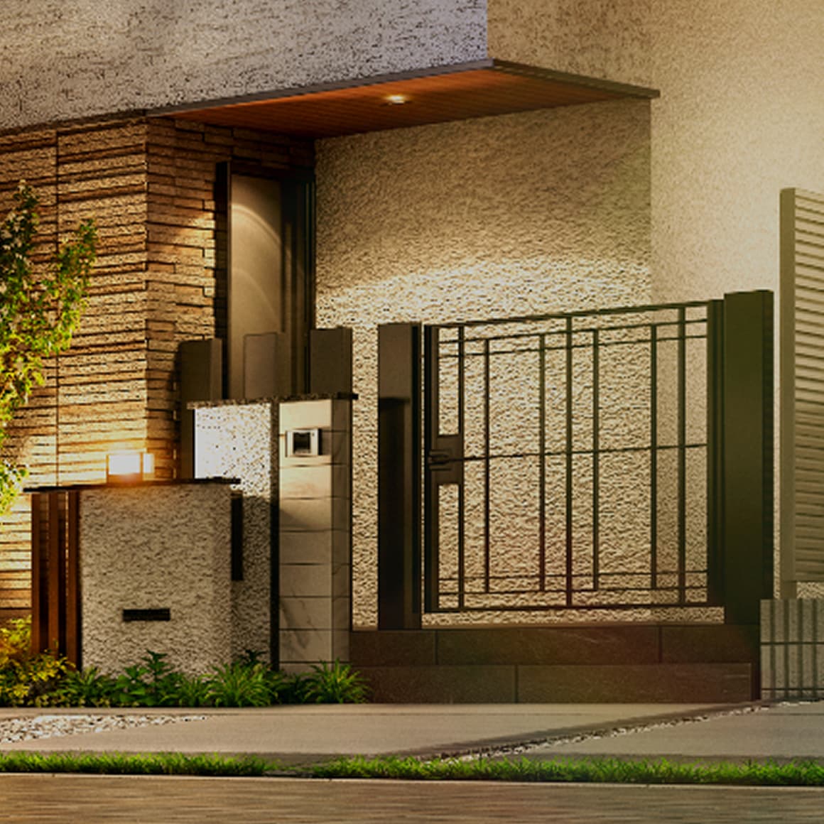 邸宅の顔となる門扉は、重厚感と装飾性を追及した門扉を採用。安心感への配慮だけでなく、風格を醸し出しエントランスを上質に際立たせます。