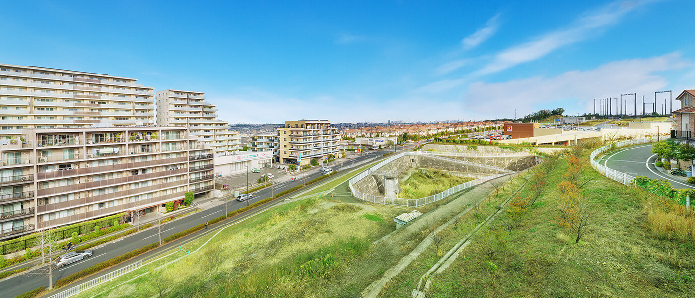 高台の立地がつくり出すパノラマビューは、住まいの価値を静かに高めていく。