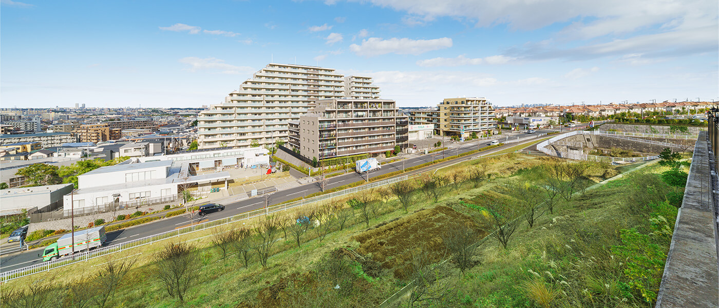 - ※掲載の完成予想図CGは計画段階の図面を基に描き起こしたもので実際とは異なります。また、今後変更になる場合があります。なお、外観の細部・設備機器・配管類及び電柱・架線・道路標識・周辺建物等は一部省略または簡略化しております。植栽は特定の季節の状況を表現したものではなく、竣工時には完成予想図程度には成長しておりません。ボリューム・形状は実際と異なる場合があり、樹種等は変更となる場合があります。タイルや各種部材につきましては、実物と質感・色等の見え方が異なる場合があります。家具・調度品・備品等は販売価格に含まれておりません。
