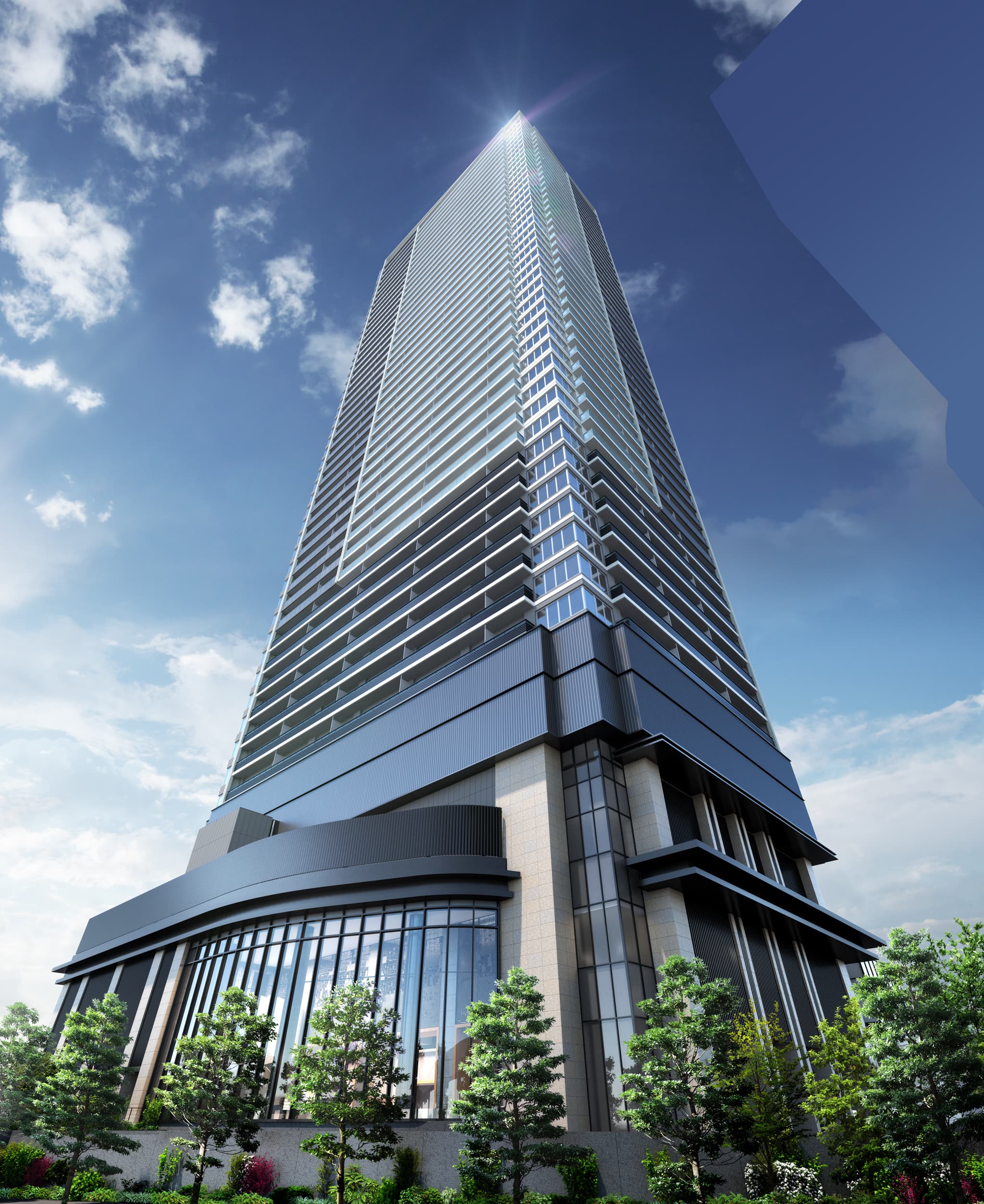 空に伸びる外観は「先進×洗練」をテーマに白とグレーを基調としたモダンな雰囲気を具現化。