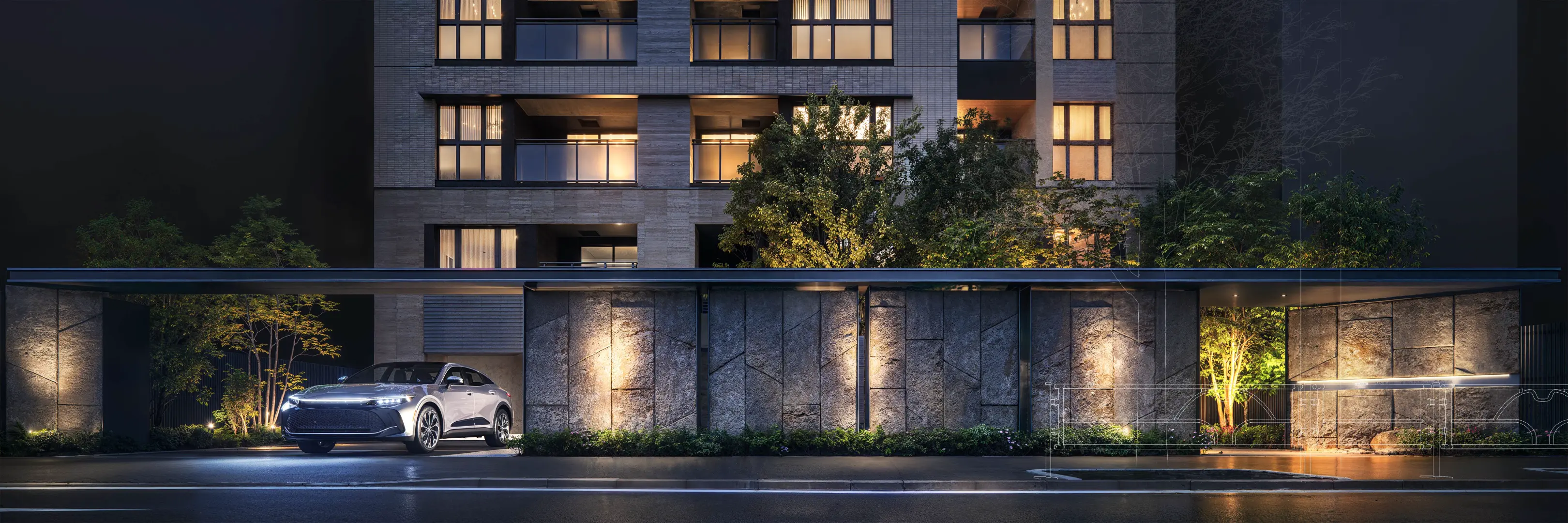 - ※掲載の完成予想CGは、計画段階の図面を基に描き起こしたもので実際とは異なります。家具・調度品等を含め計画段階のもので今後変更になる場合があります。なお、外観の細部・設備機器・配管類及び電柱 架線道路標識 周辺建物等は一部省略または簡略化しております。植栽は特定の季節の状況を表現したものではなく、竣工時には完成予想CG程度には成長しておりません。ボリューム・形状は実際と異なる場合があり、樹種等は変更となる場合があります。タイルや各種部材につきましては、実物と質感・色等の見え方が異なる場合があります。