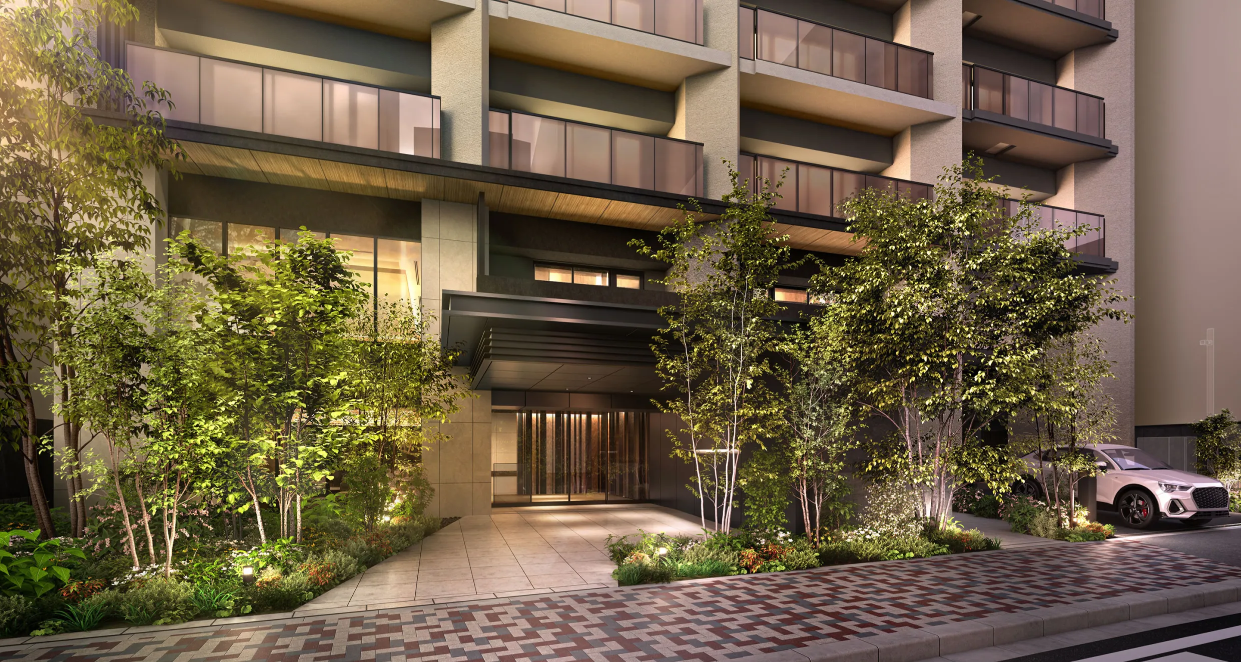「東の鎌倉」とも呼ばれ、都心からも近く、かつて自然豊かな別荘地や文教エリアとして栄えた市川市。今でも街に残る伝統的な日本家屋が生み出す景観は、緑が多く居心地の良い街の“温もり”と、長い歴史の中で確立した“格式”を体現しており、その日本家屋や寺院仏閣で古くから日本の伝統建築様式として採用されている「木組み」を外観や共用部のデザインモチーフとして取り入れました。