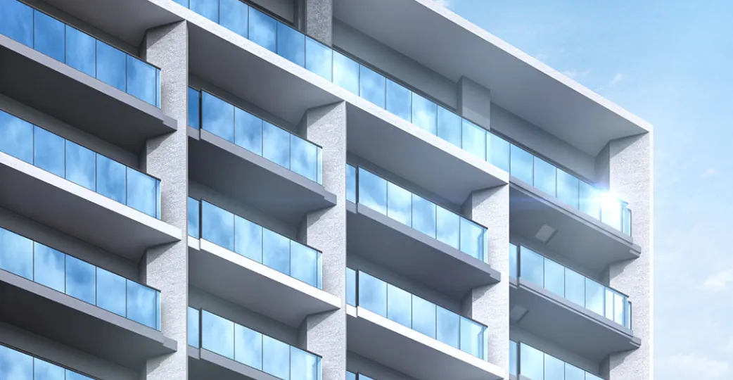 バルコニーにはガラス手摺(ラミスカイ)を採用。室内側からはクリアな視界を確保しつつ、外からの視線を遮り紫外線も軽減。美しい外観を演出します。