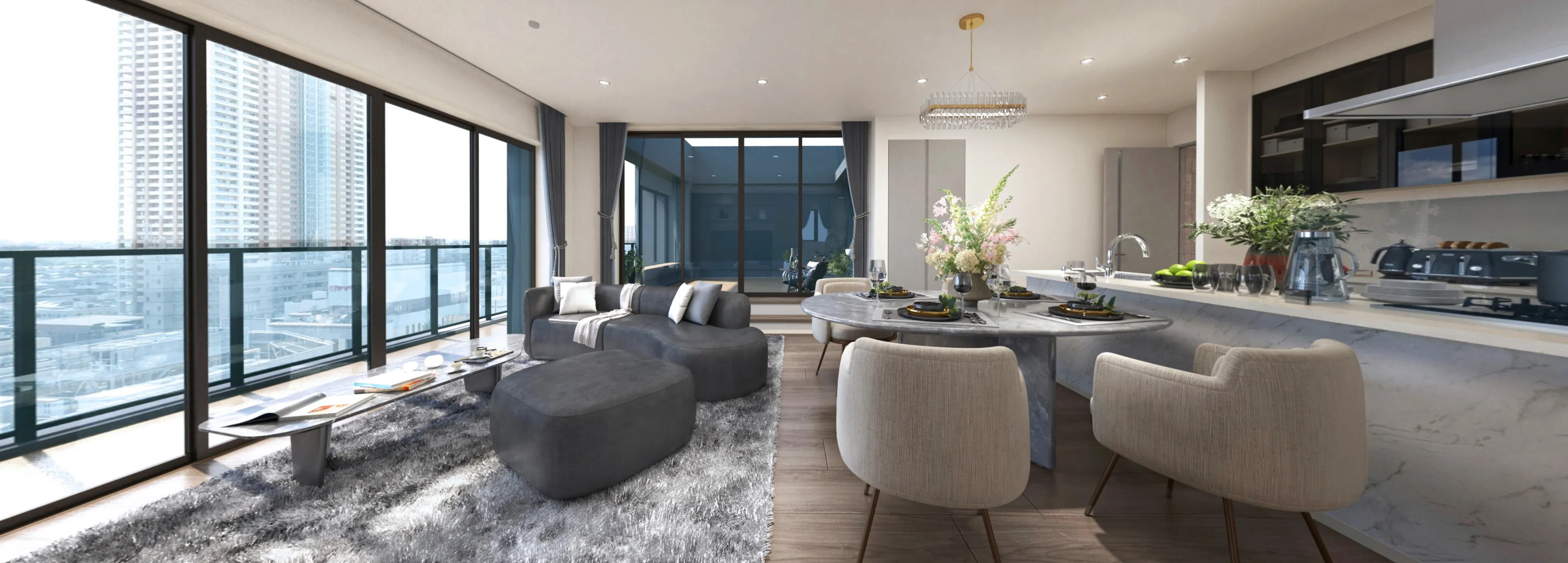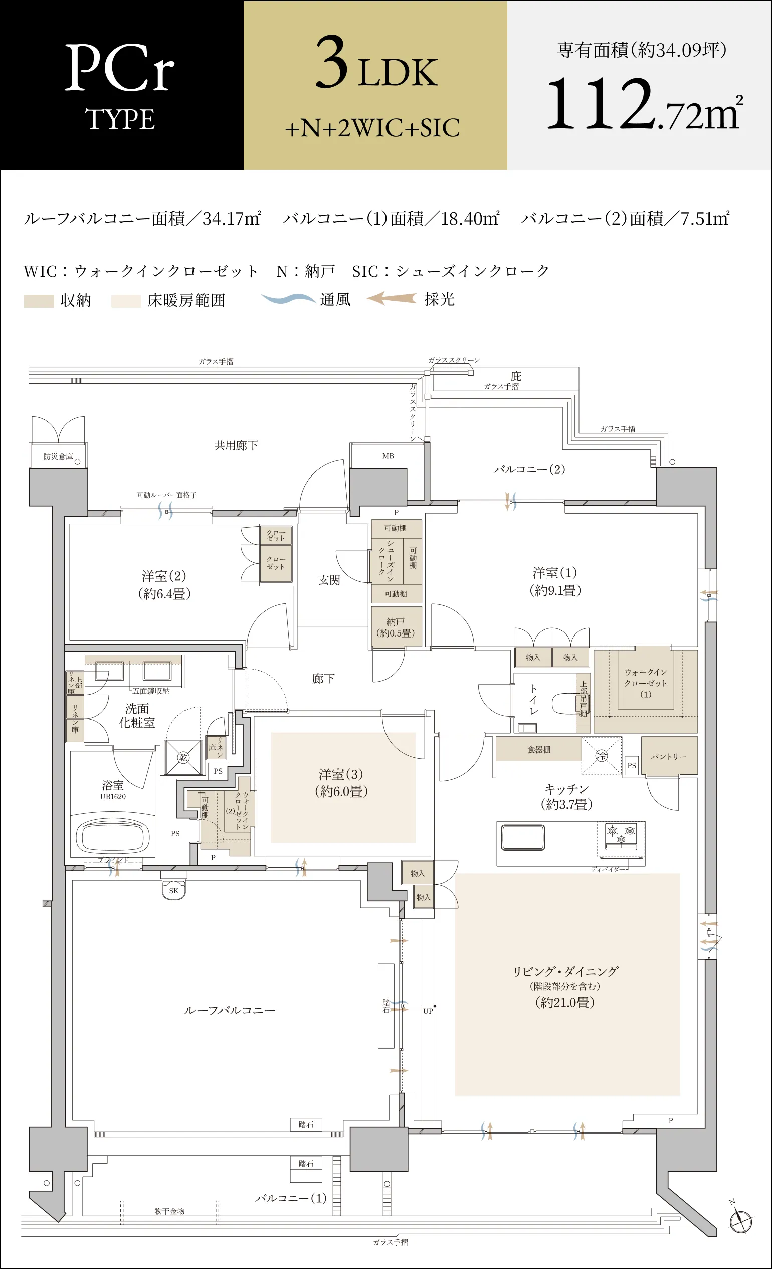 最上階の限定3邸でプレミアムプランをご用意。110㎡超のゆとりの広さに加え、開放的なルーフバルコニーや充実の設備仕様をご用意しています。
