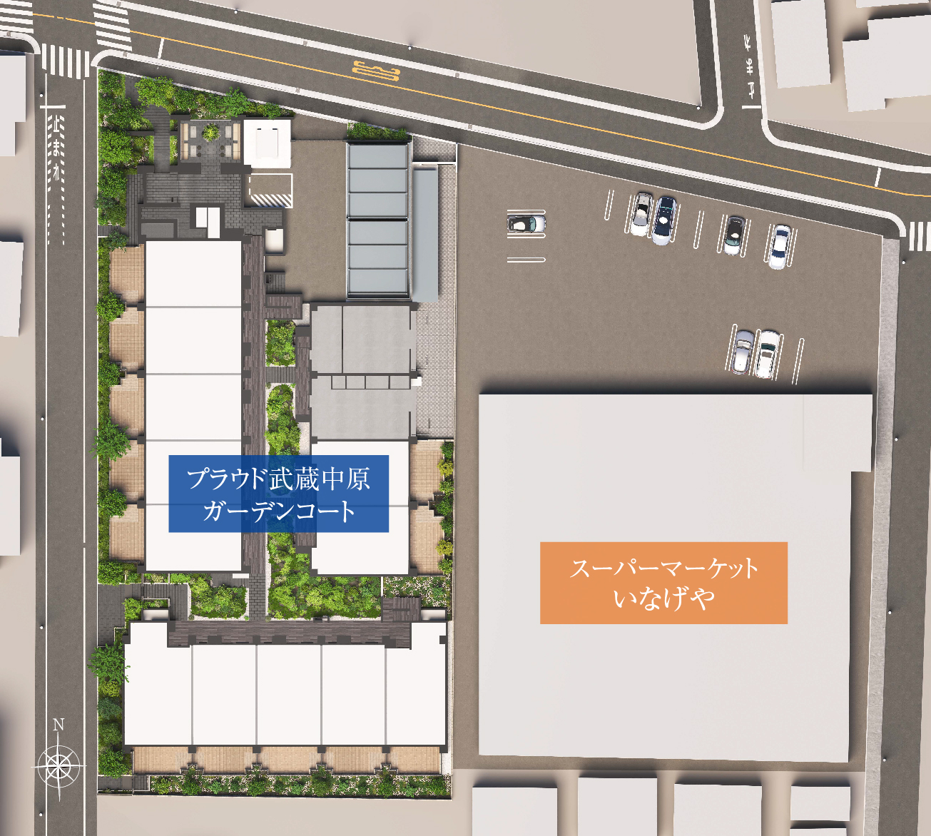 スーパー「いなげや」(営業時間/9:00~21:30)が敷地に隣接。仕事帰りで疲れている時にも気軽にお惣菜を買えたりと忙しい都市生活をサポートします。