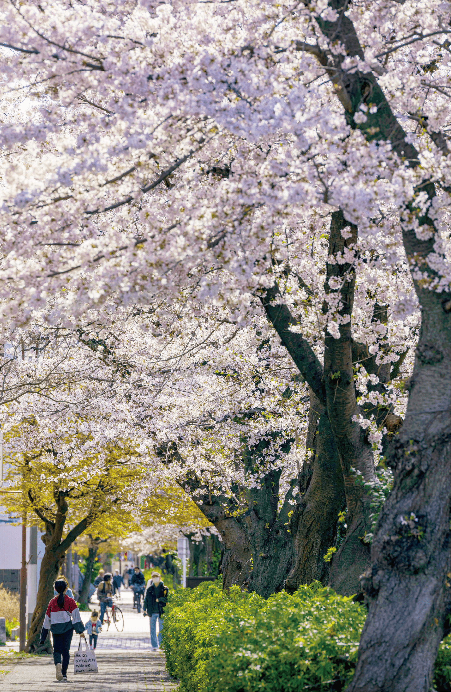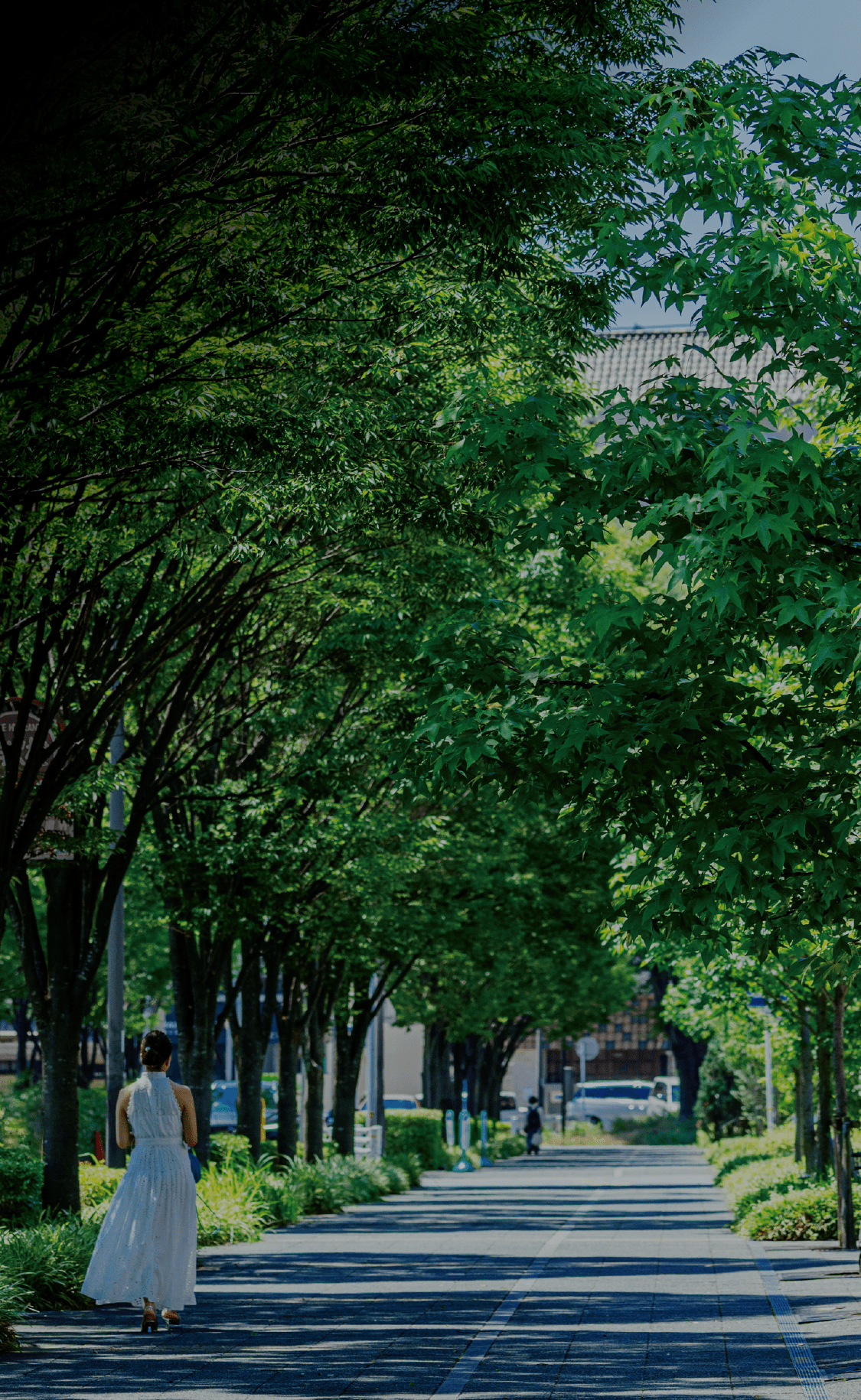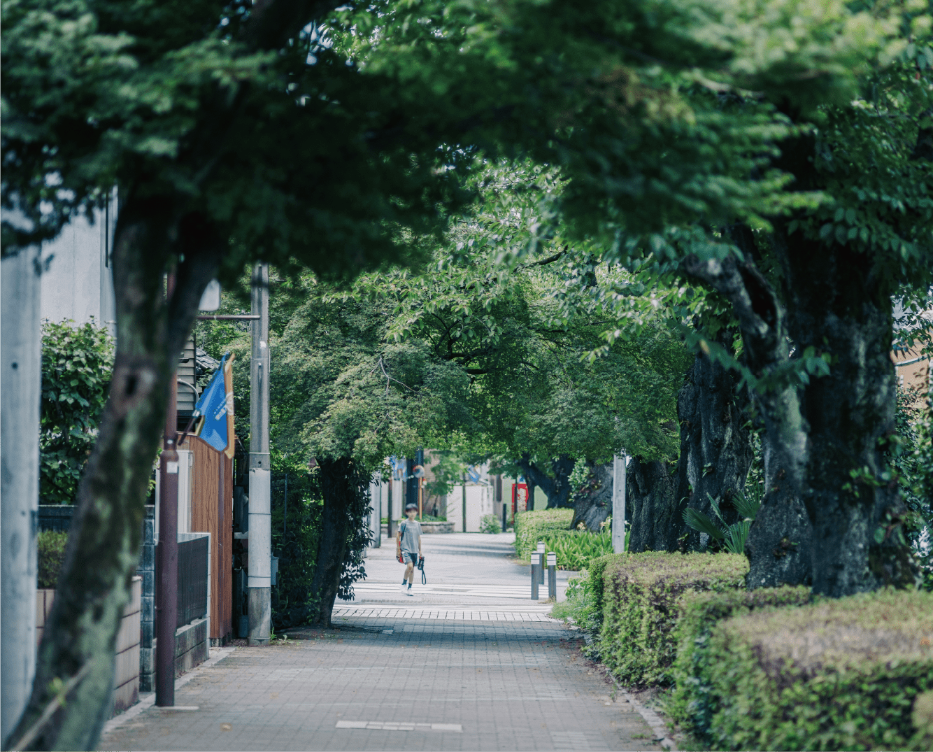 水道みち緑道に包まれた美しい緑景、整備された歩道。