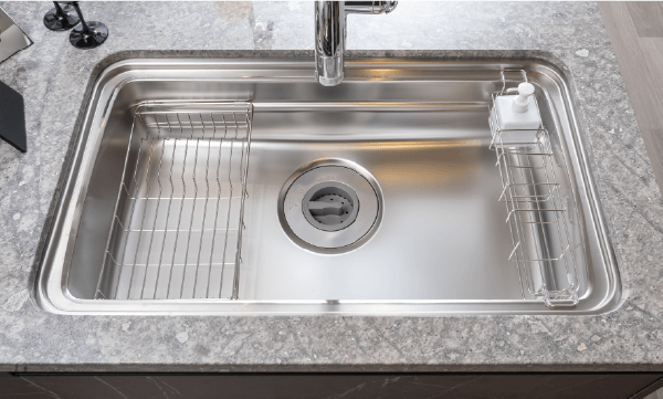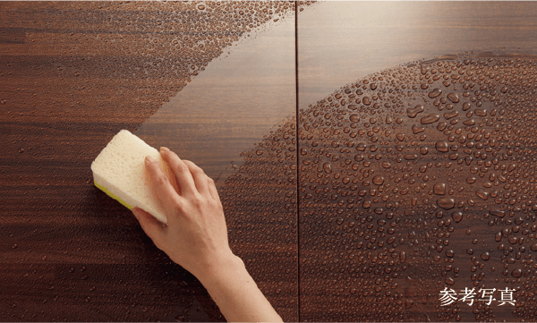 シンク上段やミドルスペースに専用パーツを設置し、広い調理スペースを実現。キッチンシンク裏側に特殊加工を施すことにより、水はねの音をこれまでより抑えた低騒音仕様としました。