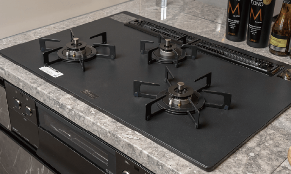 アルミトップのガスコンロキッチンには、見た目が美しいだけでなく、掃除も容易なアルミトップのガスコンロを採用しています。