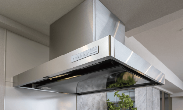 レンジフード操作スイッチをマグネットで好きな場所に移動可能。汚れやすい整流板は、清掃性に優れたホーローです。