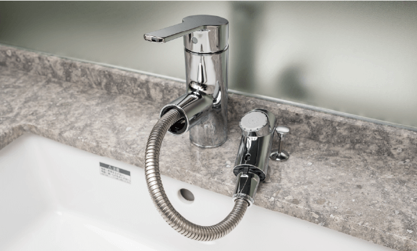 シングルレバー水栓「サイクロンバブルミストシャワー水形」を搭載し、通常シャワーの3.5倍※1の洗浄力で毎日の手洗いが今まで以上にパワフルに。ホース&首振り機能でお掃除がもっと楽に。