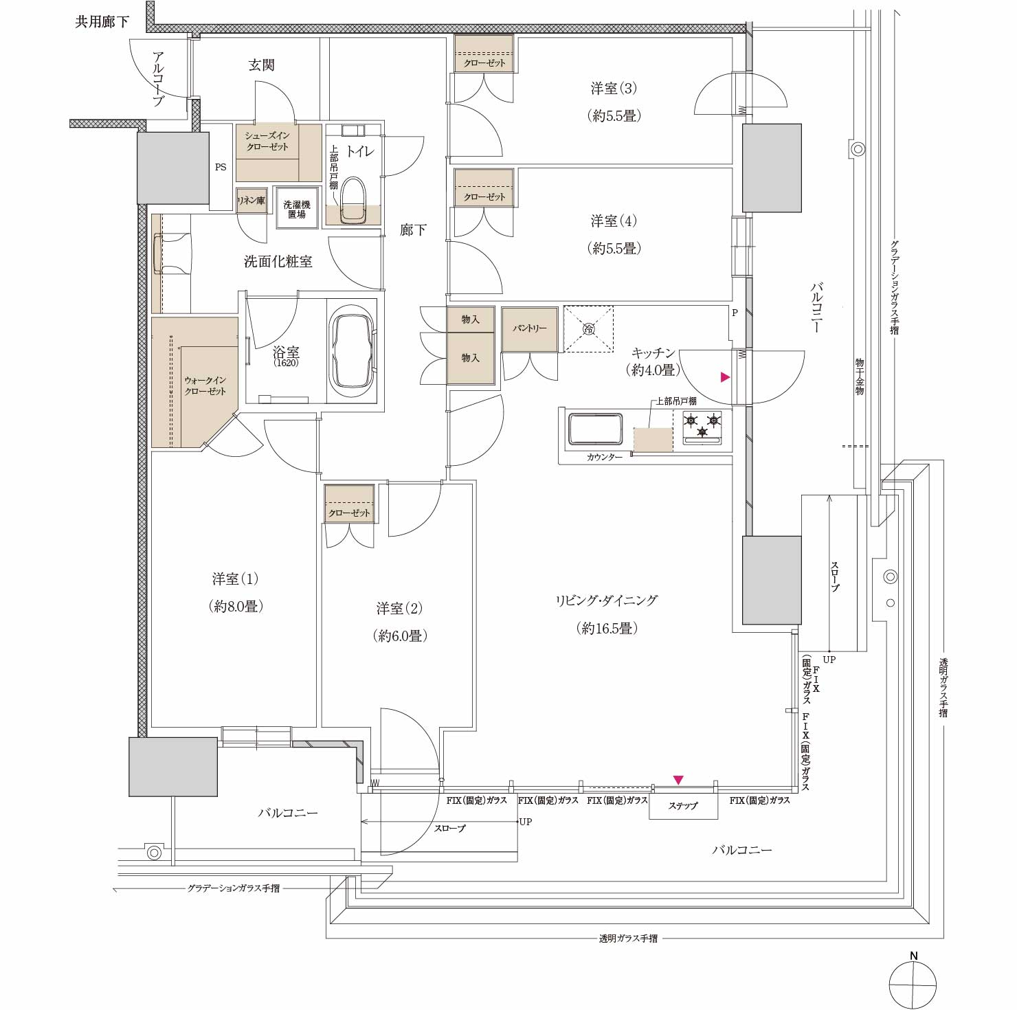 住戸専有面積 / 106.58㎡(約32.24坪)