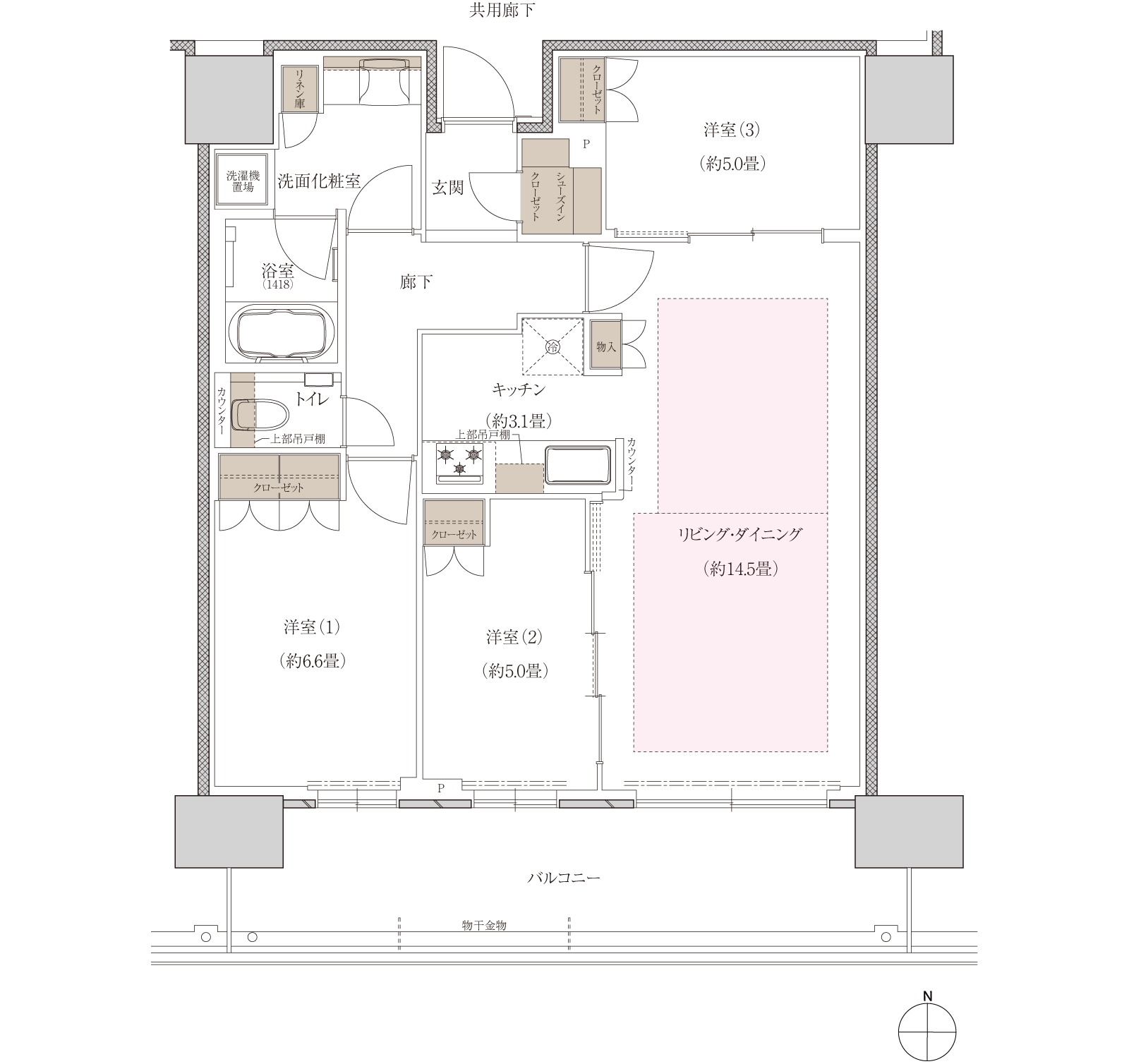 住戸専有面積 / 77.66㎡(約23.49坪)