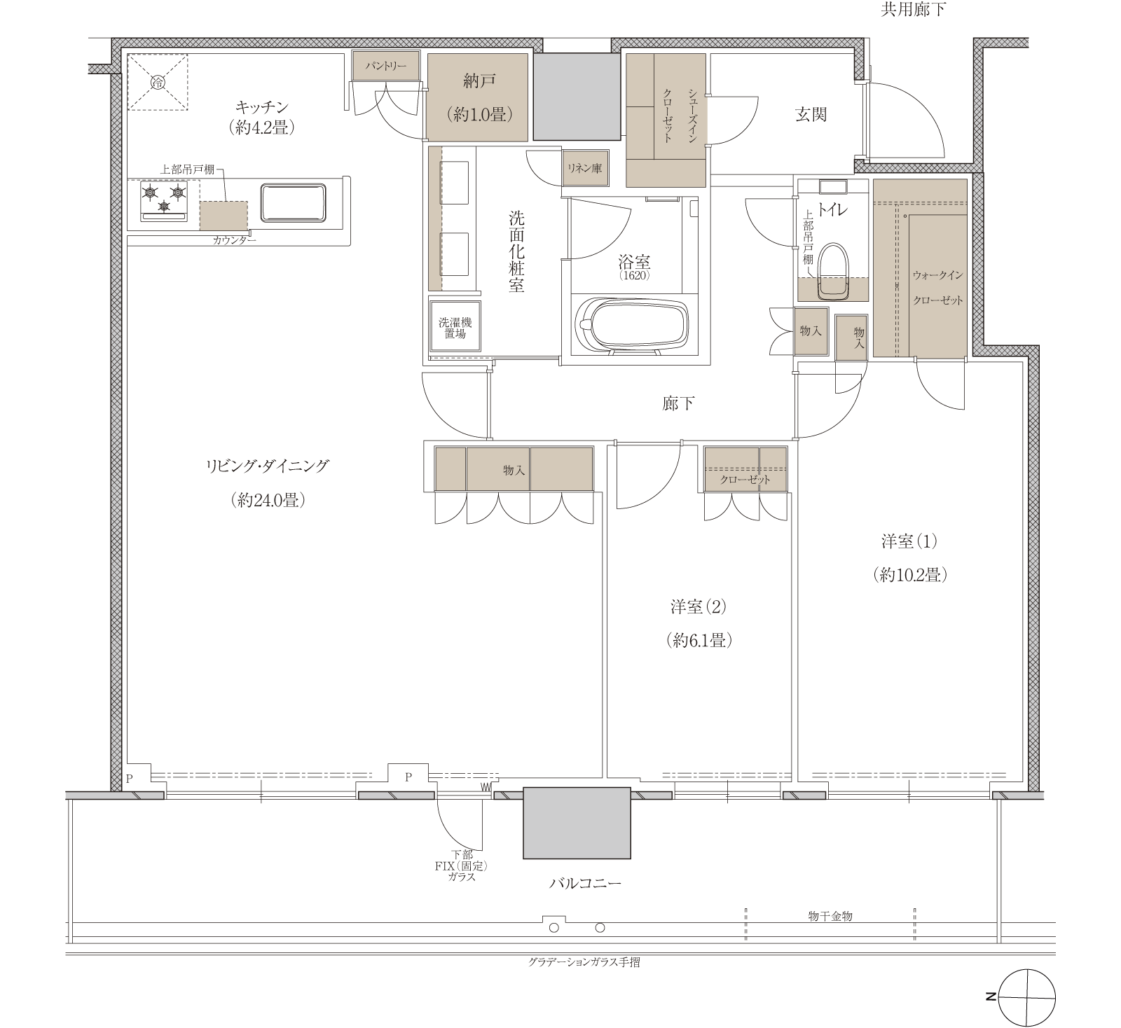 - ※モデルルームのバルコニー手摺のガラスは実装しておりません。