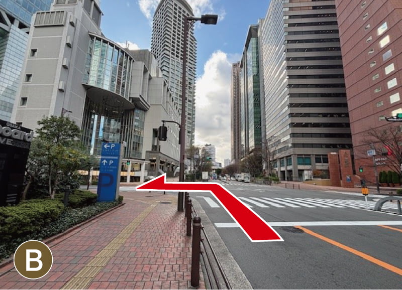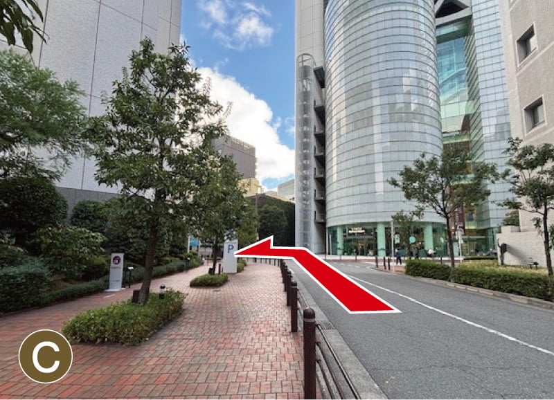 地下3階より建物へお入りいただく際は、ヒルトンプラザウエストとオフィスタワーの入口が異なります。オフィスタワーの入口からお入りいただき17階へお越しください。