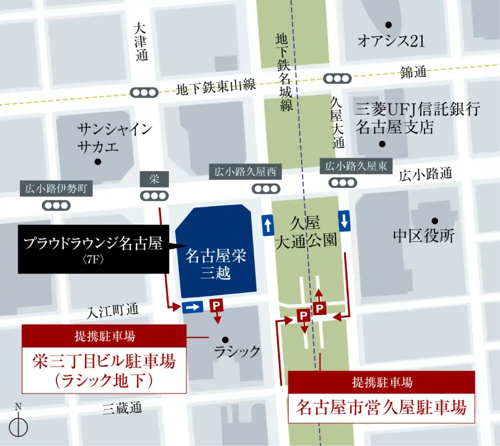 上記以外の提携駐車場は名古屋栄三越と同様になります。